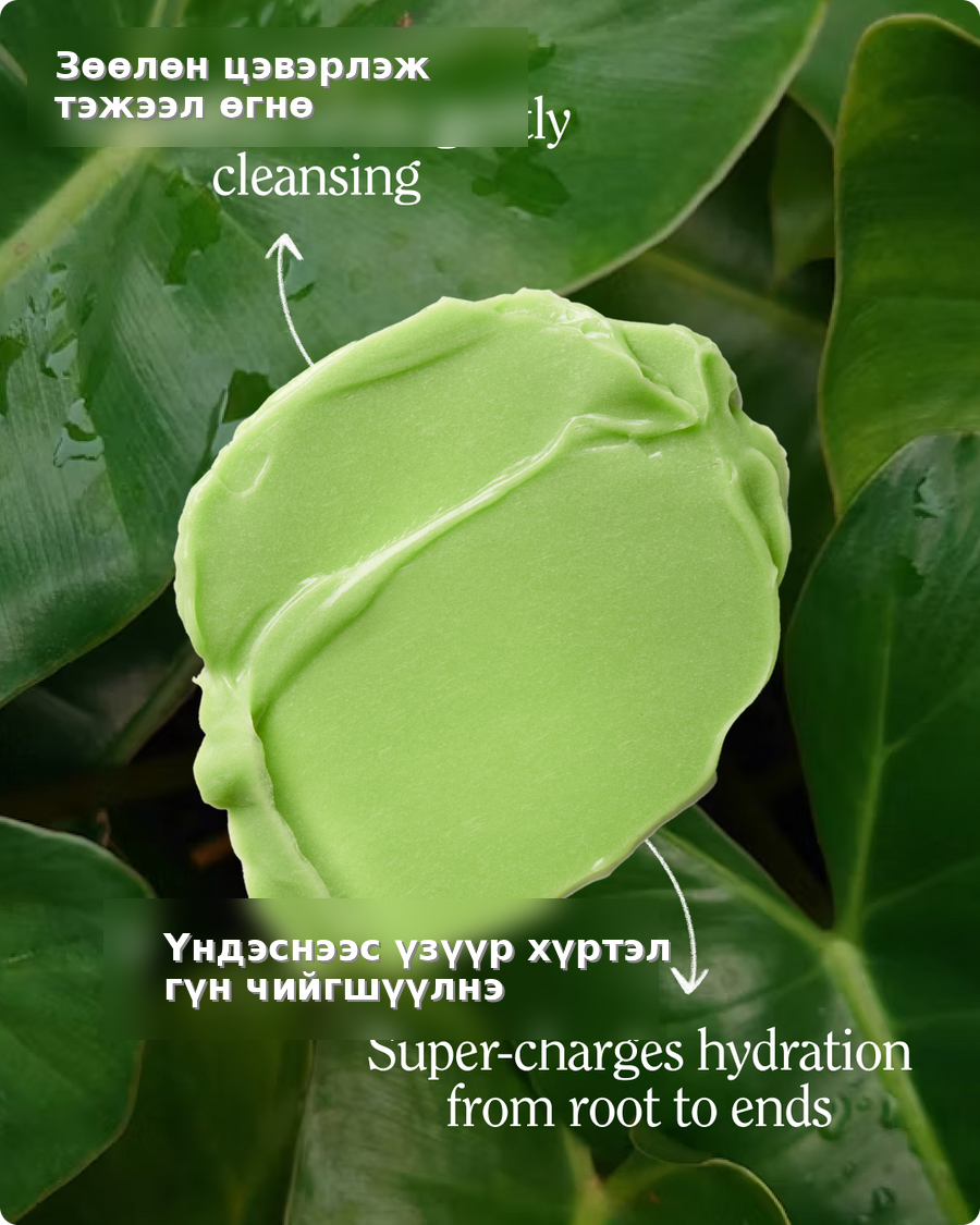 Арганы тос, ши тос, витамин B5, жожоба тос. Сульфат, парабен, силикон агуулаагүй.